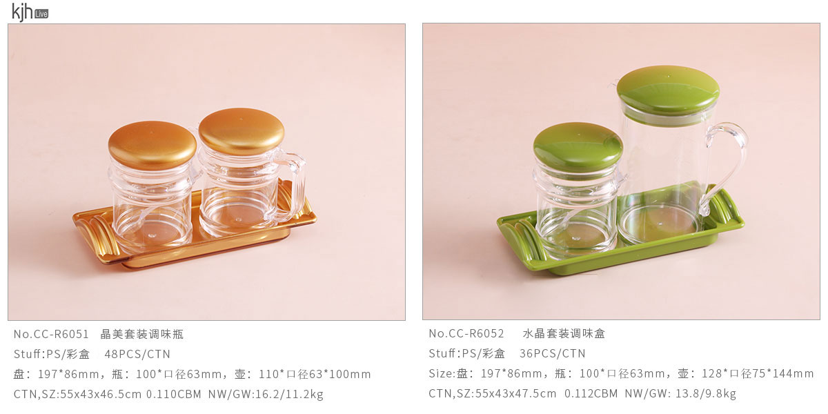 Size: CC-R6051:盤197*86mm,瓶100*?63mm,壺110*?63*100mm CC-R6052:盤197*86mm,瓶100*?63mm,壺128*?75*144mm