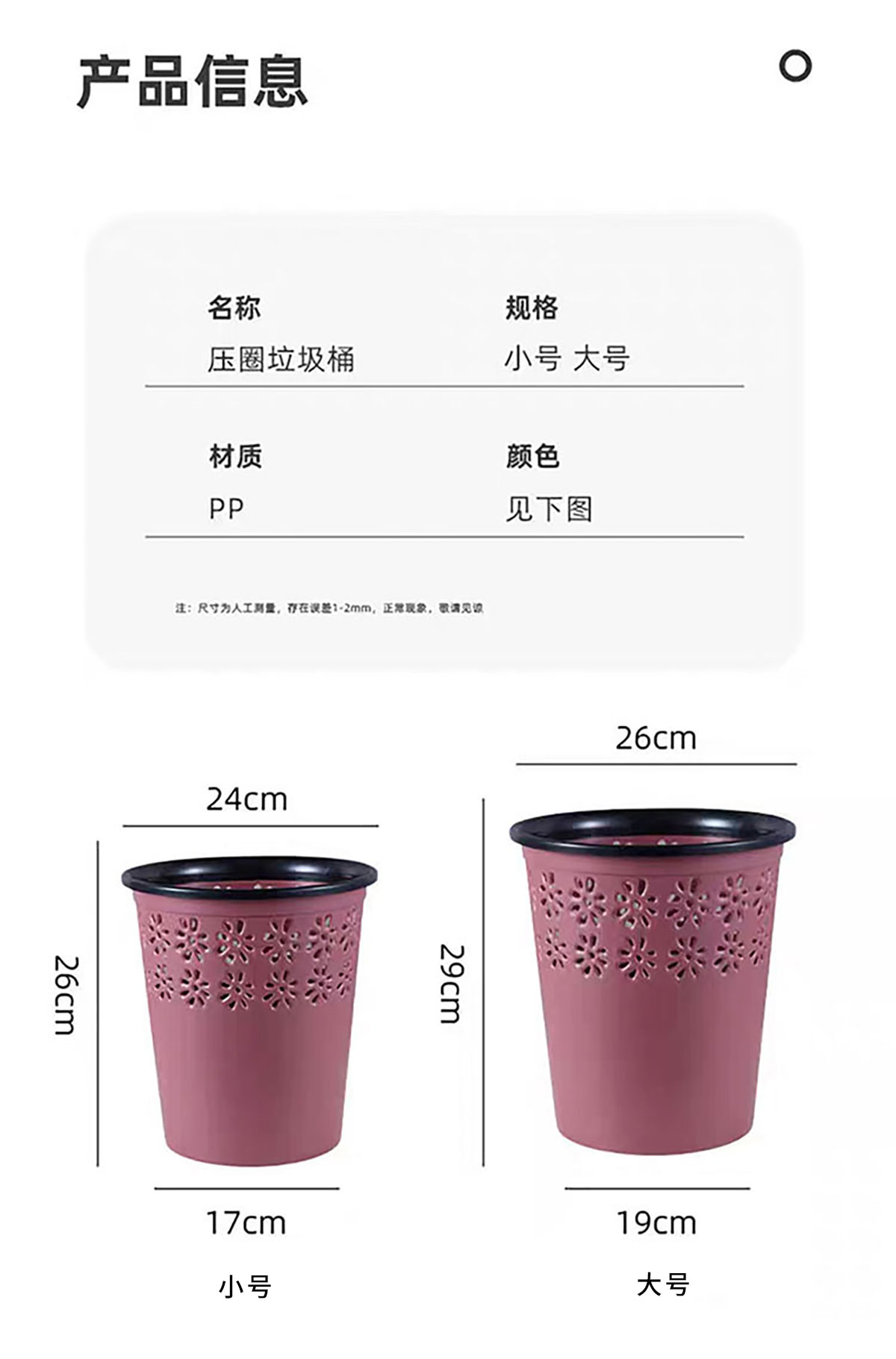 小號(hào)/大號(hào)簡(jiǎn)約壓圈紙簍