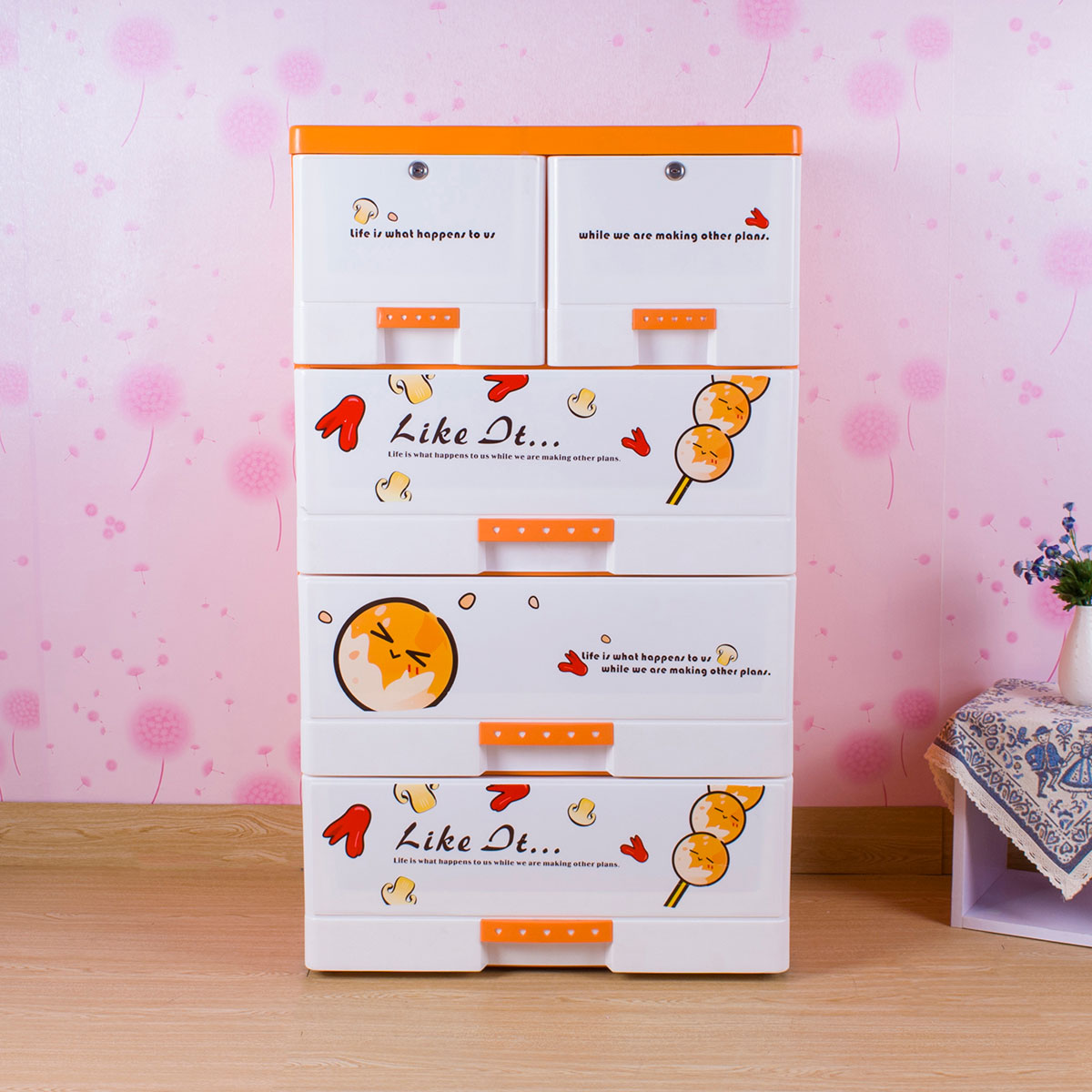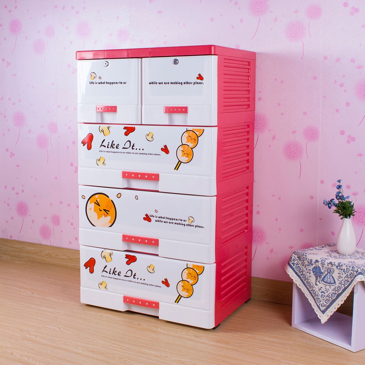 單層格面印花帶鎖整理柜(四層/五層)