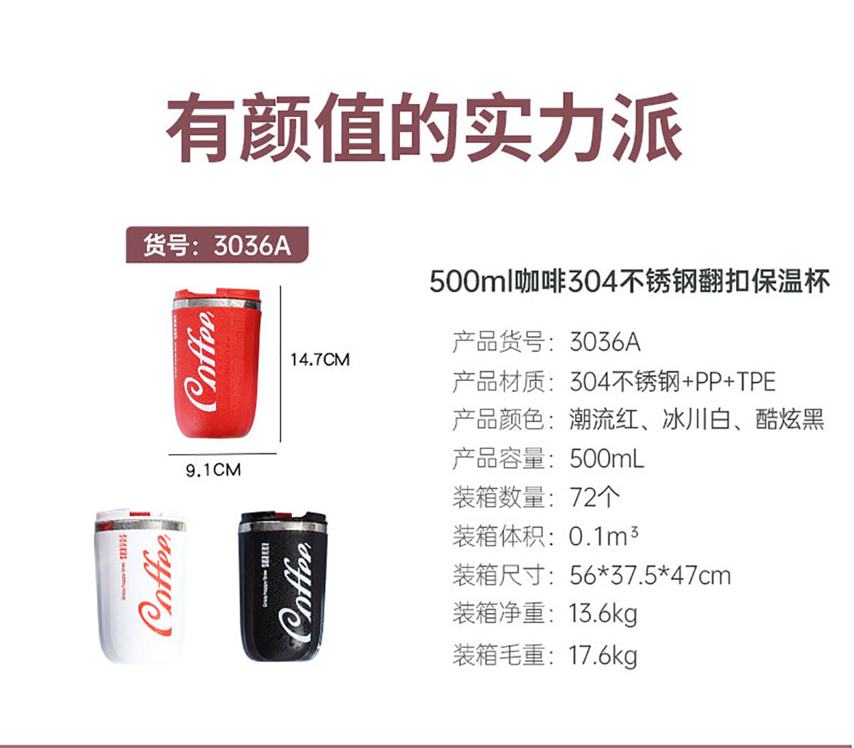 500ml咖啡304不銹鋼翻扣保溫杯