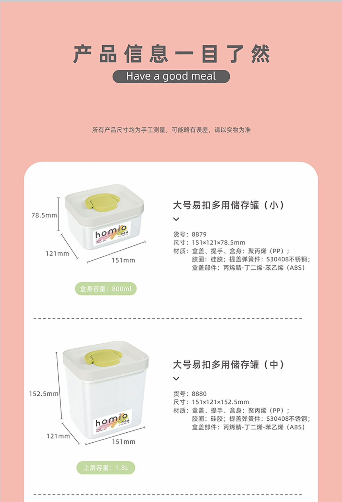 Size: HM-8879(小號(hào)800ml):151*121*79mm