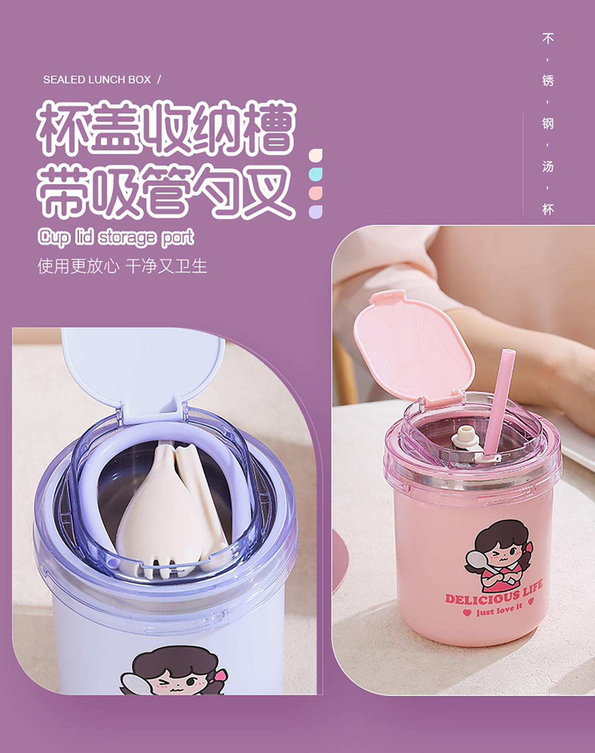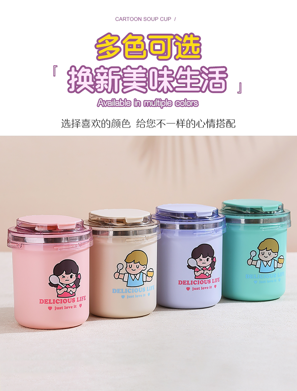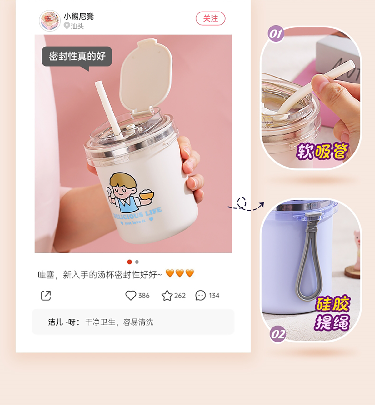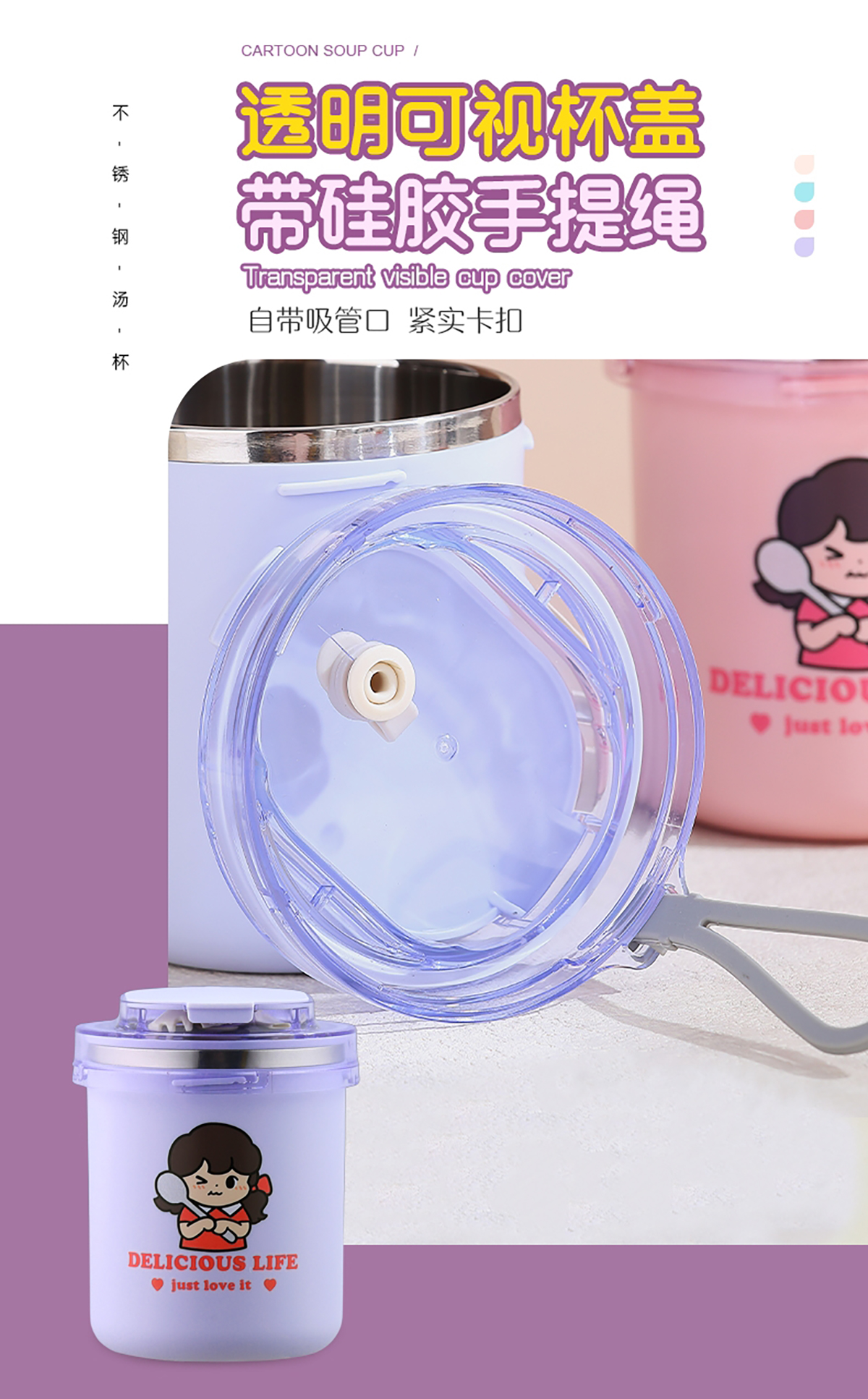 時(shí)尚ins卡通湯杯(530ml)+送吸管