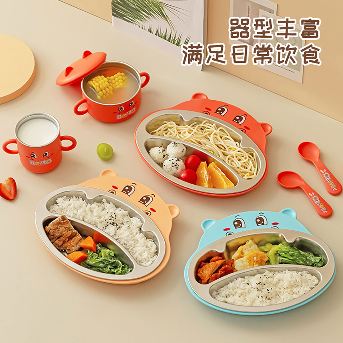 嘟嘟河馬不銹鋼套裝兒童餐具