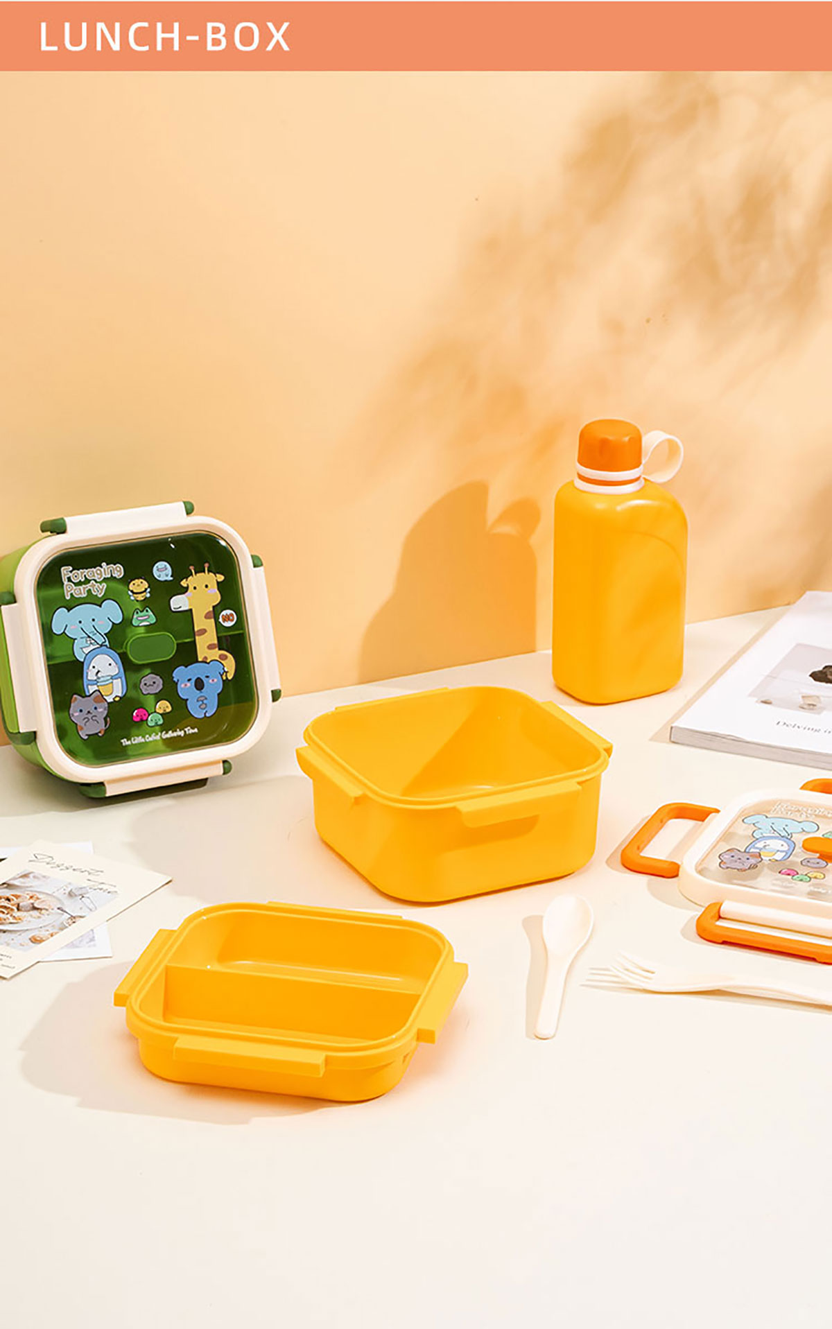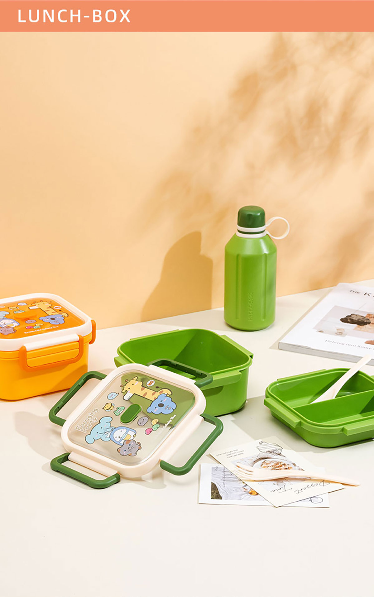 尚趣正方雙層飯盒(1100ml)/+圓形/方形運(yùn)動水壺(500ml)