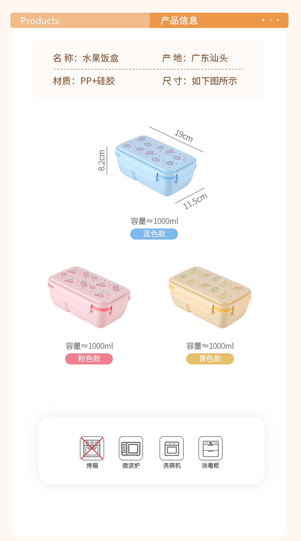 水果蜜語(yǔ)輕食便當(dāng)盒(配叉+勺)850ml