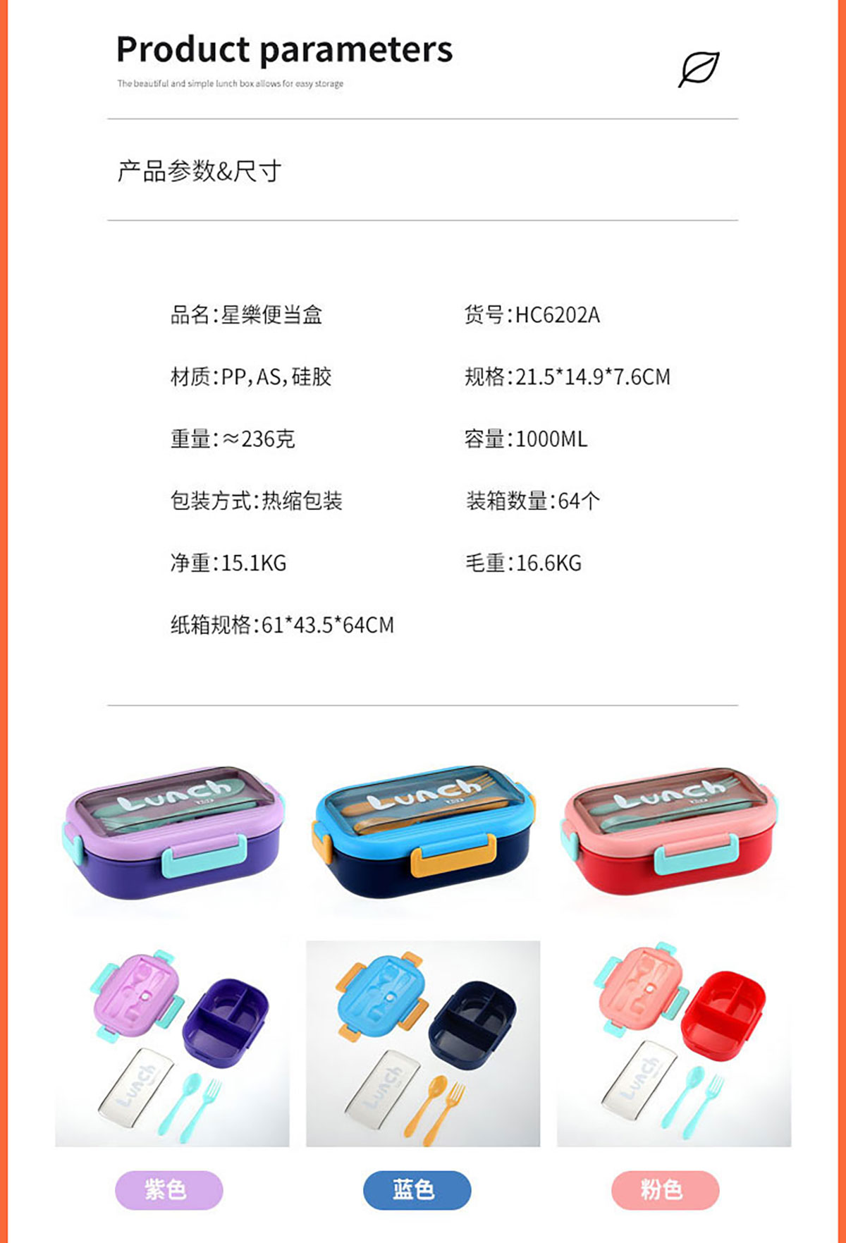 星樂(lè)便當(dāng)盒(PP矮款/PP加高款/不銹鋼矮款/不銹鋼加高款/水杯套裝)
