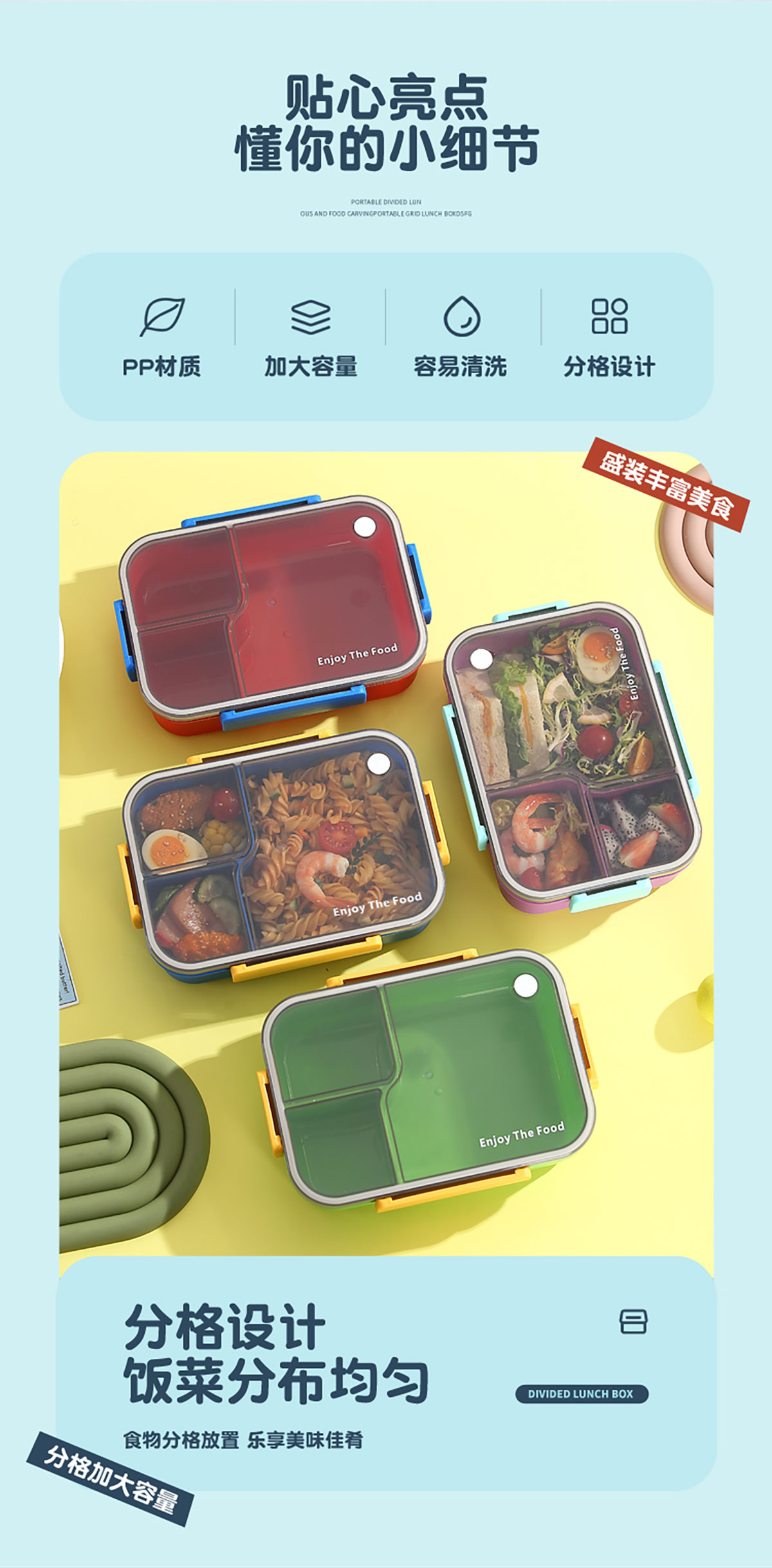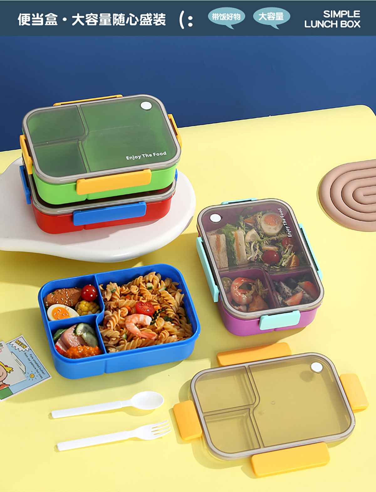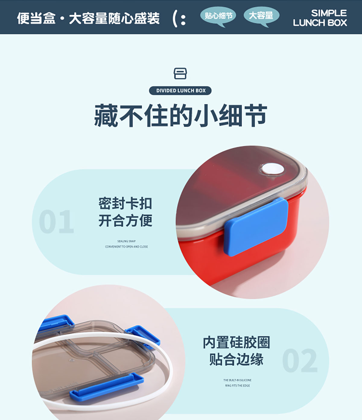 簡(jiǎn)約透明分格飯盒1450ml