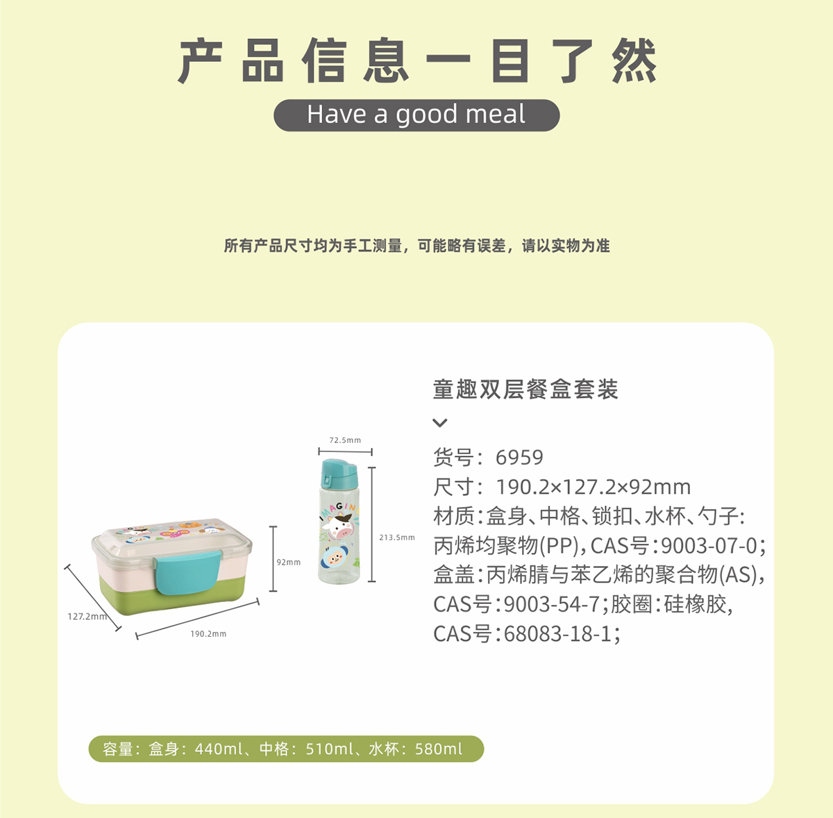 Size: 水杯:72.5*213.5mm 飯盒:190.2*127.2*92mm